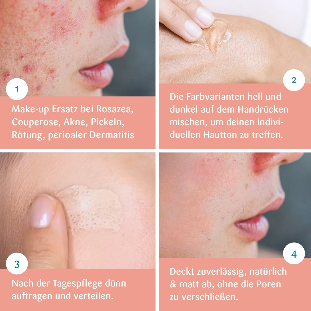 Make-up Ersatz bei Rosazea, Akne, Pickeln, Rötungen – zuverlässige Abdeckung, ohne Reizung oder Maskeneffekt.