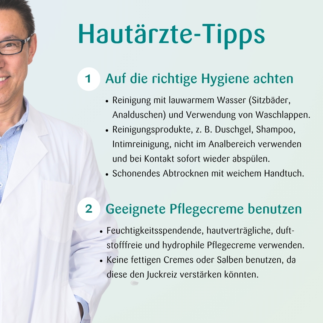 Pflege bei Juckreiz an After & Po-Falte – akut und dauerhaft anwendbar, zieht schnell ein ohne klebriges Hautgefühl.