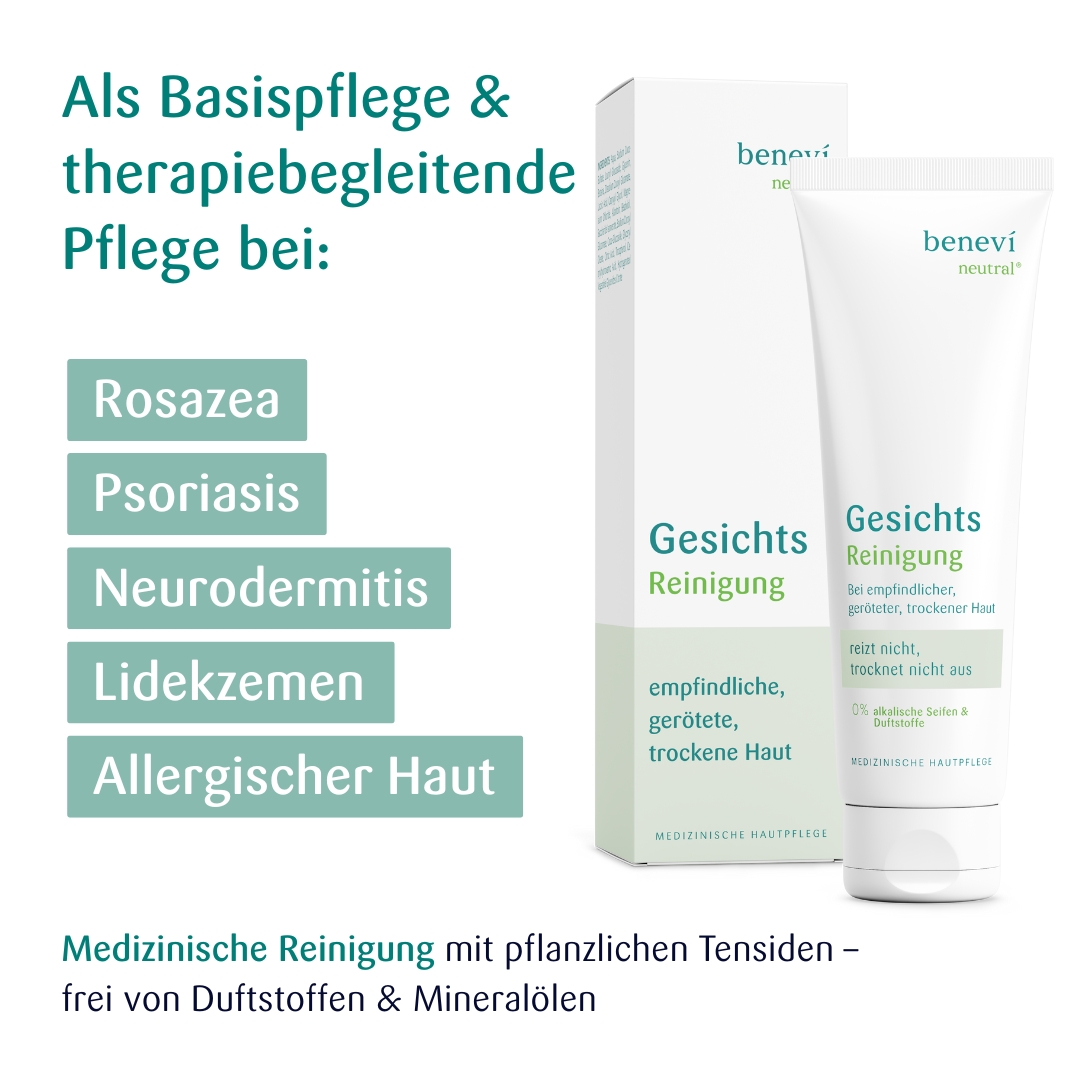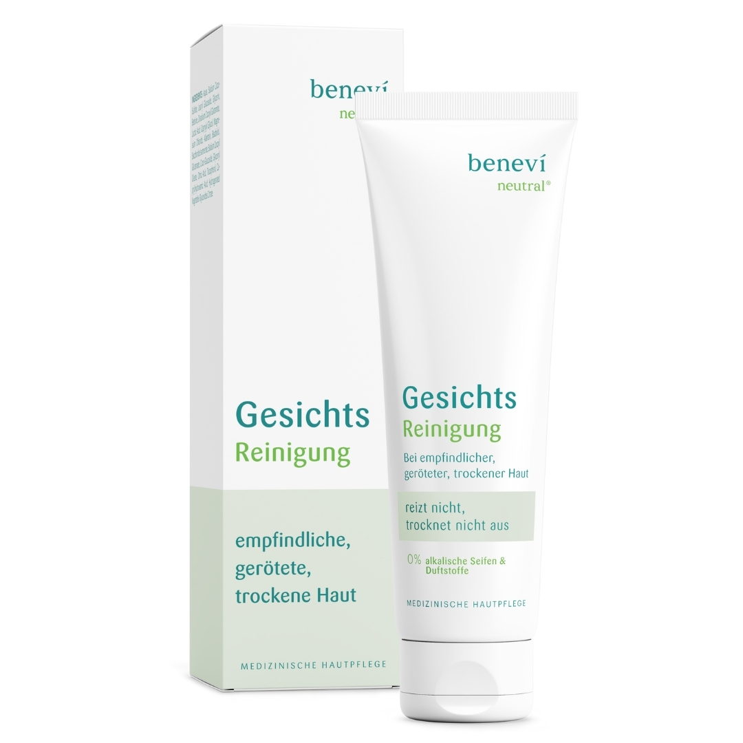benevi neutral Gesichtsreinigung ist ein besonders mildes, seifenfreies Waschgel für empfindliche, trockene oder zu Rötungen neigende Gesichtshaut. Es reinigt gründlich, ohne die Haut auszutrocknen oder zu reizen – ideal für die tägliche Anwendung.
