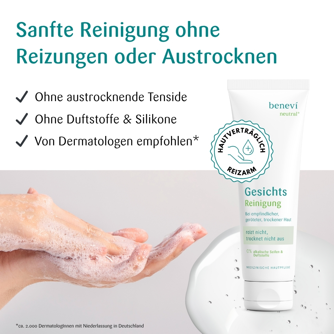 Sanfte Reinigung für empfindliche & trockene Gesichtshaut – ohne Reizungen, ohne Austrocknen. Dermatologisch getestet.
